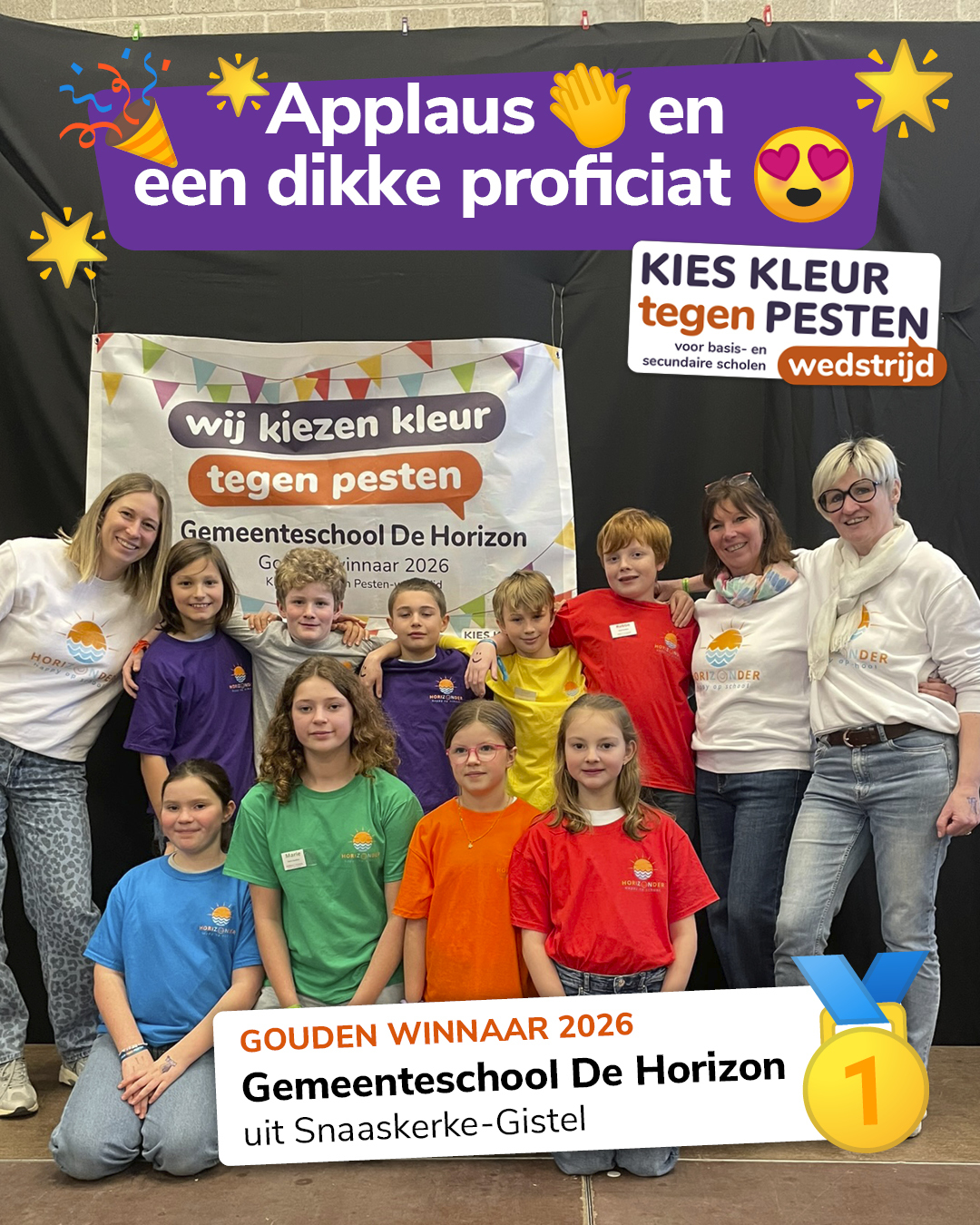 Vanaf 15 september startte het Netwerk Kies Kleur tegen Pesten en STIP IT weer de strijd tegen pesten. Samen met heel wat scholen, sportclubs en jeugdwerkorganisatie maakten zij een gestipte vuist tegen pesten en lieten ze zo zien dat pesten echt niet oké is! STIP IT is ondertussen voorbij, maar pesten voorkomen en terugdringen doen we samen een hele jaarlang. Ga aan de slag met het educatieve materiaal uit het aanbod van de partners van het netwerk en geef pesten geen kans!